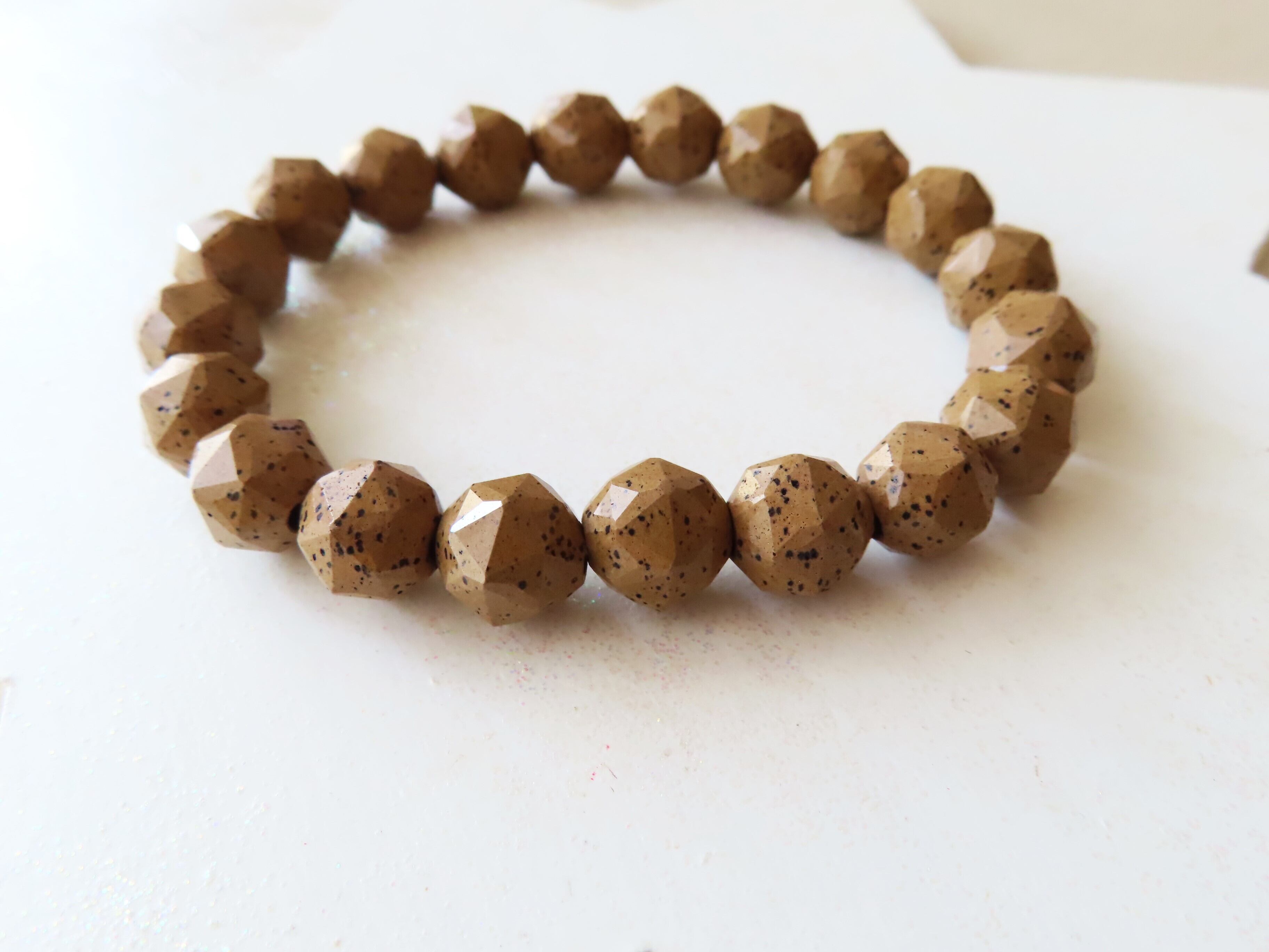 北投石スターカット、10㎜玉を使用 イエローグレイタイプ(黄土色)