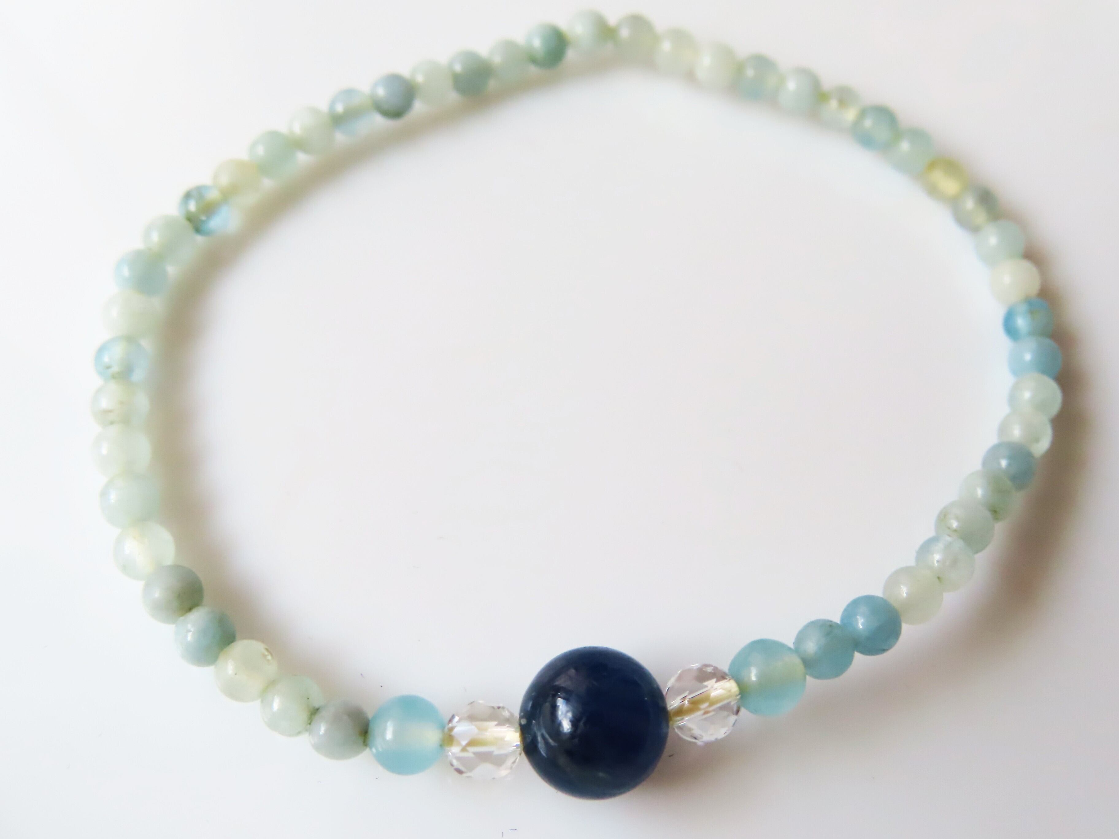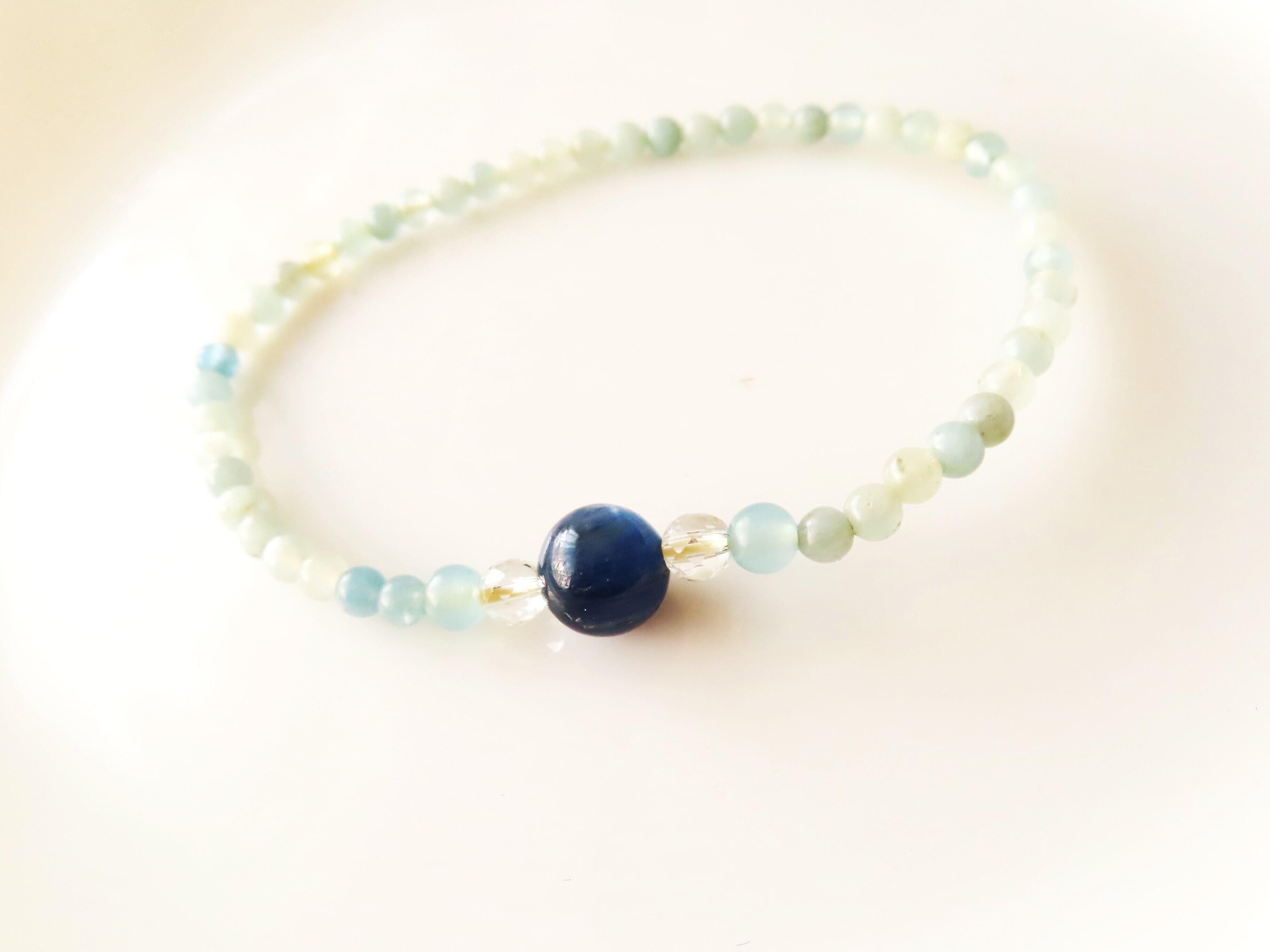 カイヤナイト8㎜玉、アクアマリン2mm玉、水晶2mm玉を