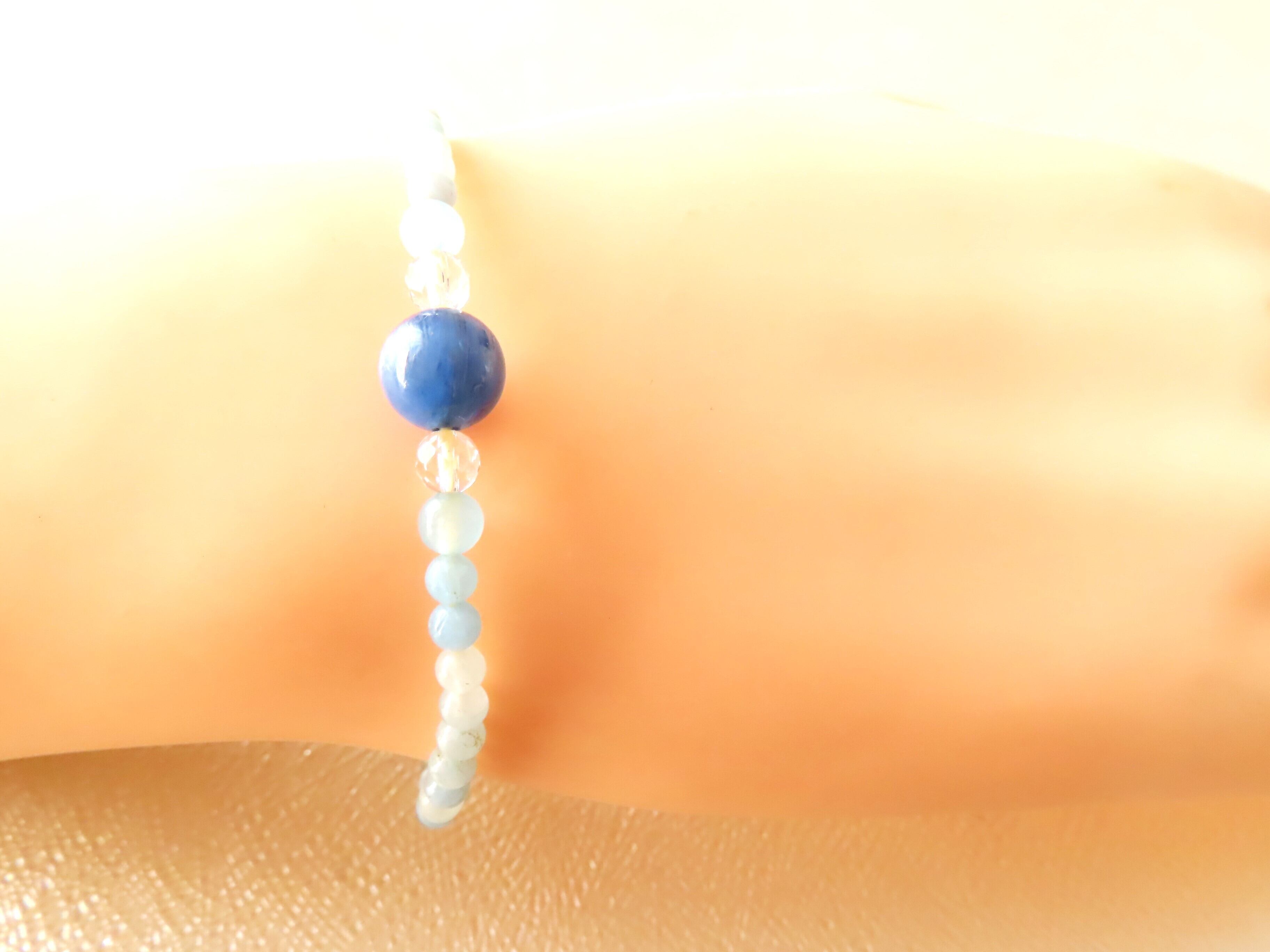 アクアマリン&カイヤナイト 「深い癒しと心の余裕」 華奢スタイルブレスレット