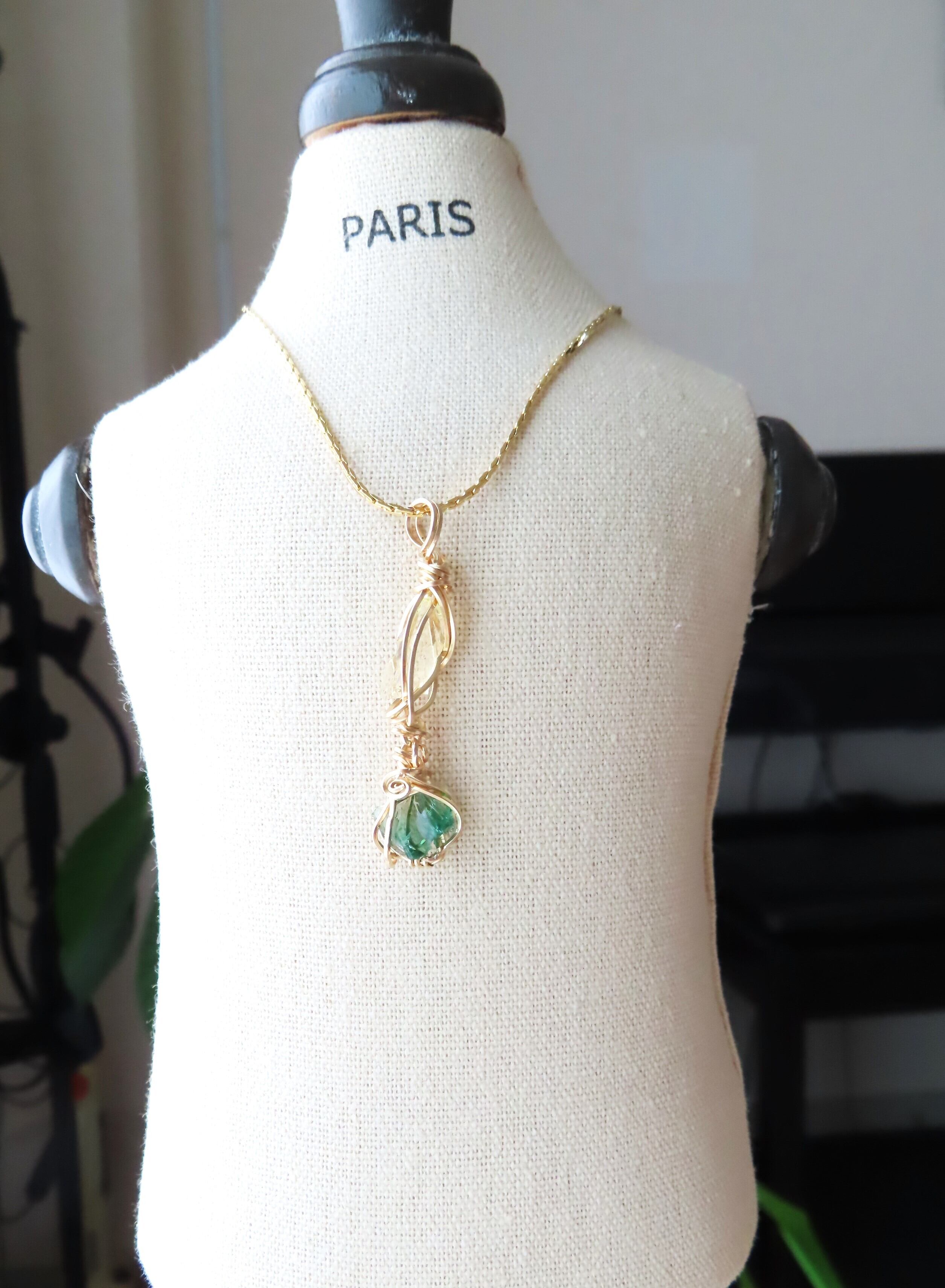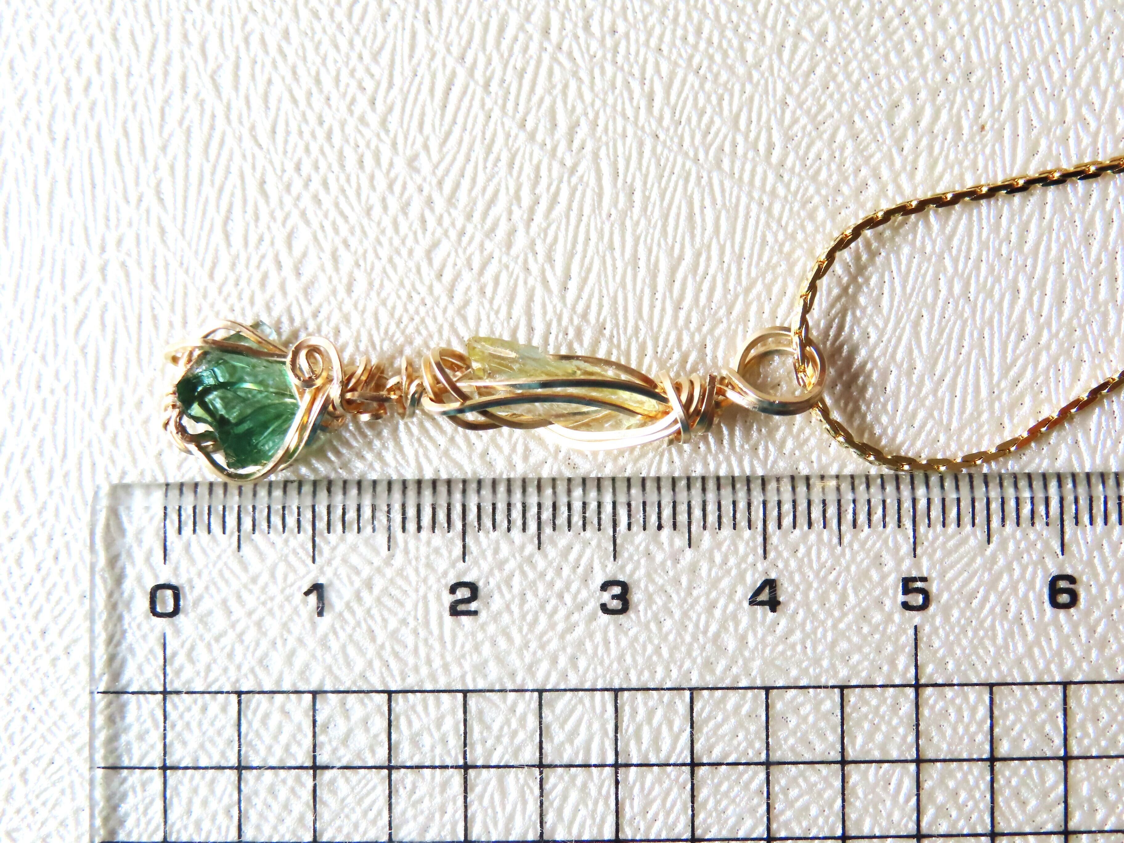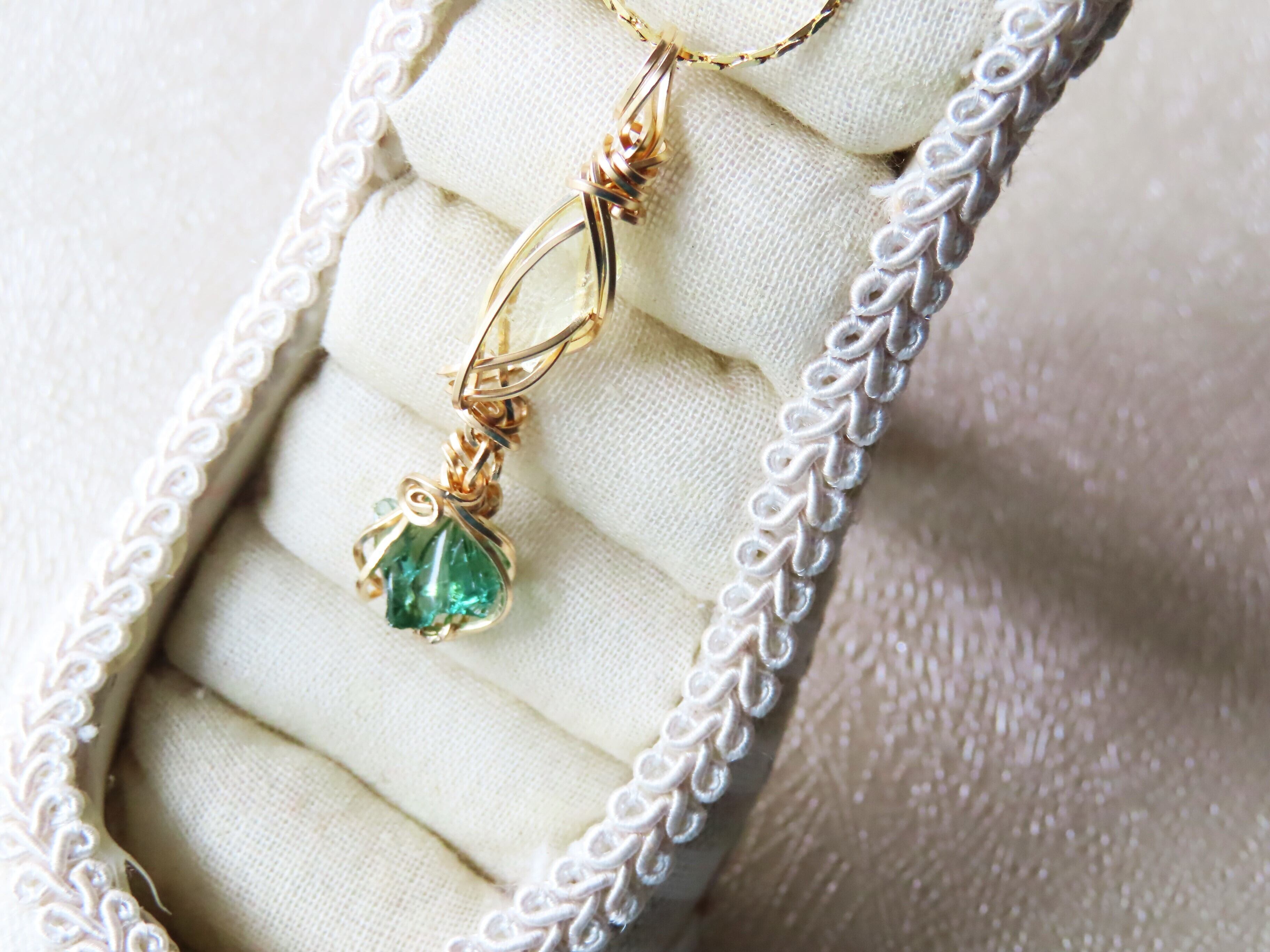 深い緑からイエロー、そしてゴールドのグラデーションが美しいペンダントです。