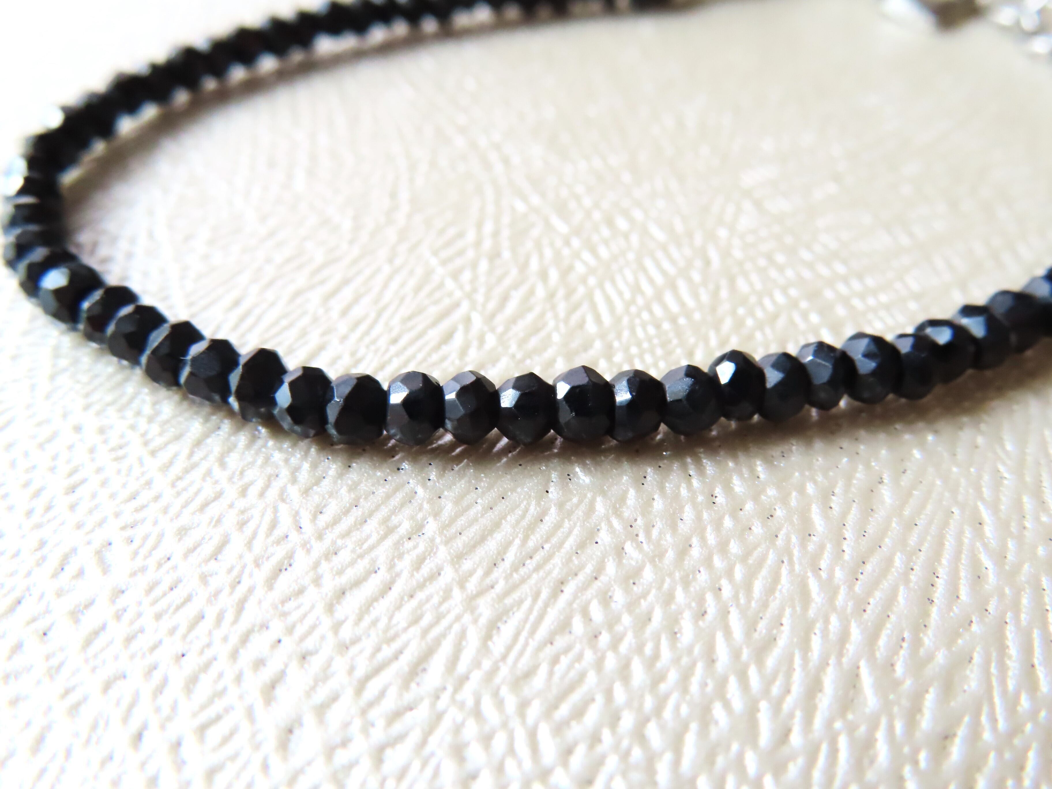 深い黒色のブラックスピネルは、その独特の輝きで見る人を魅了します。
