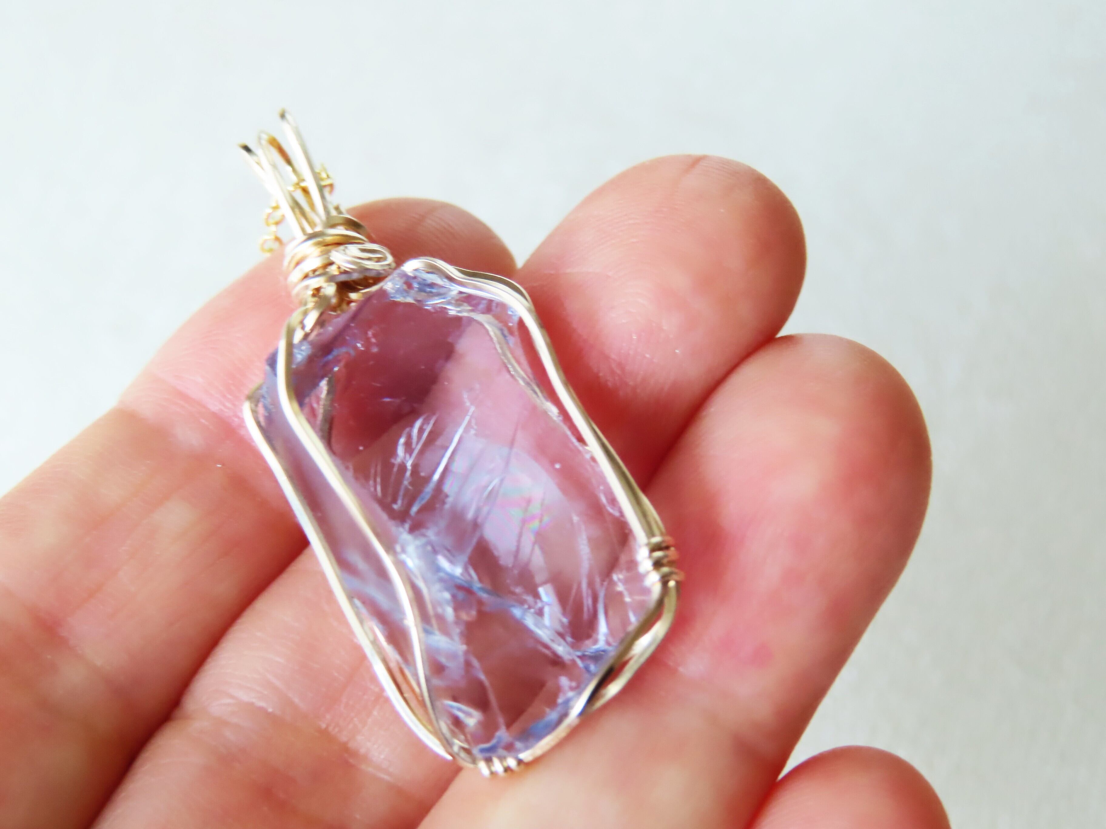 淡いパプルカラーが優しく透明度が高く、表面は滑らかで美しい形状です。