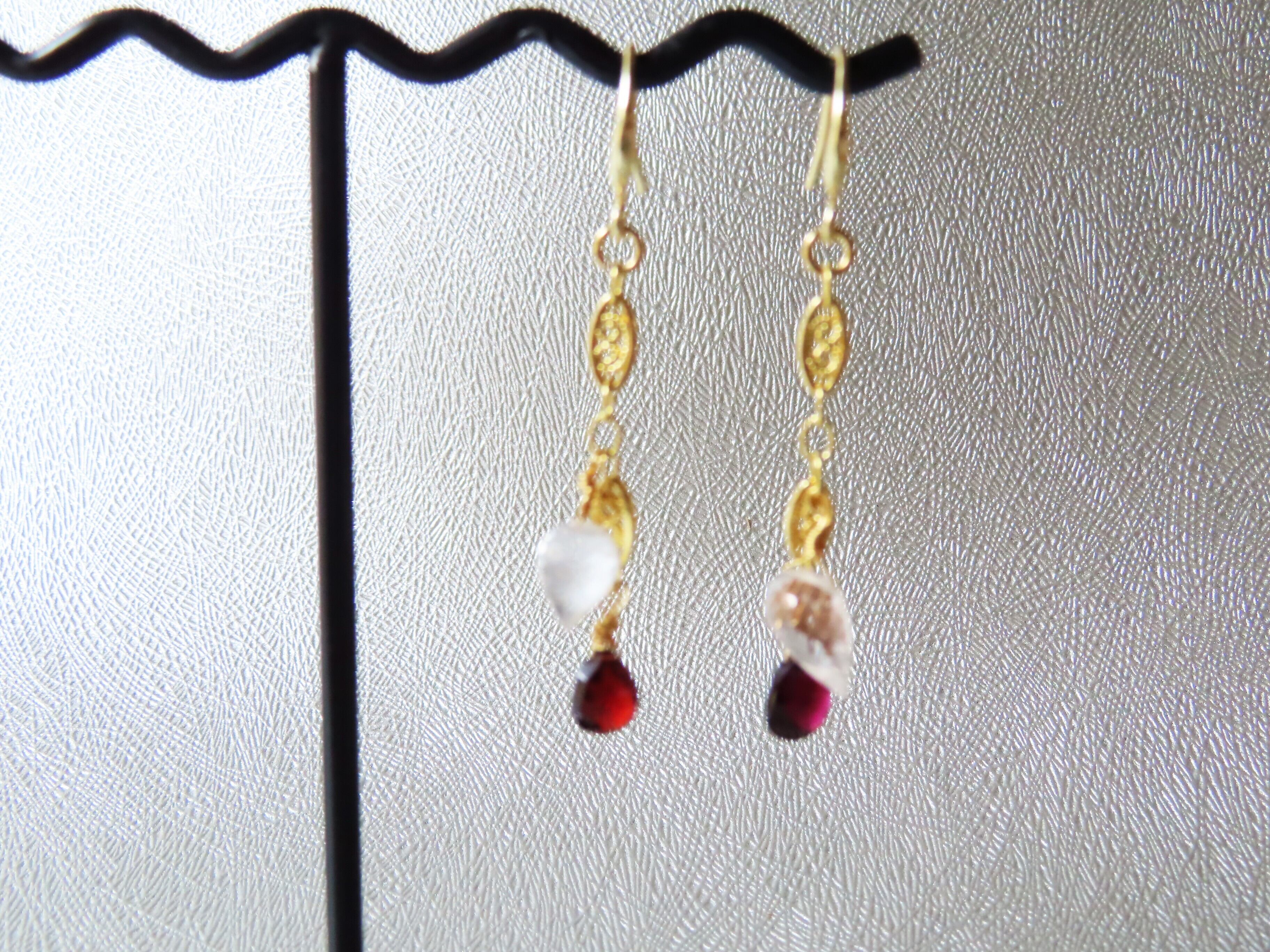 素材:フック、パーツは14kgf(14金ゴールドフィルド)、ガーネット、クォーツ