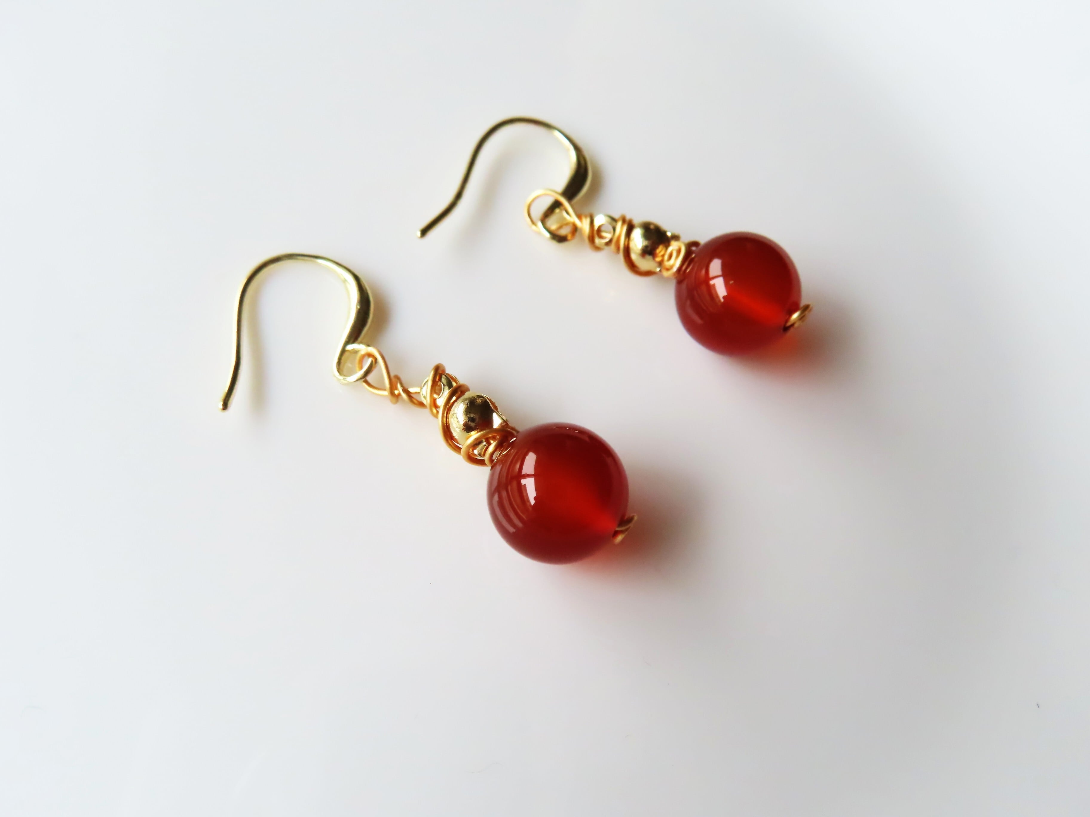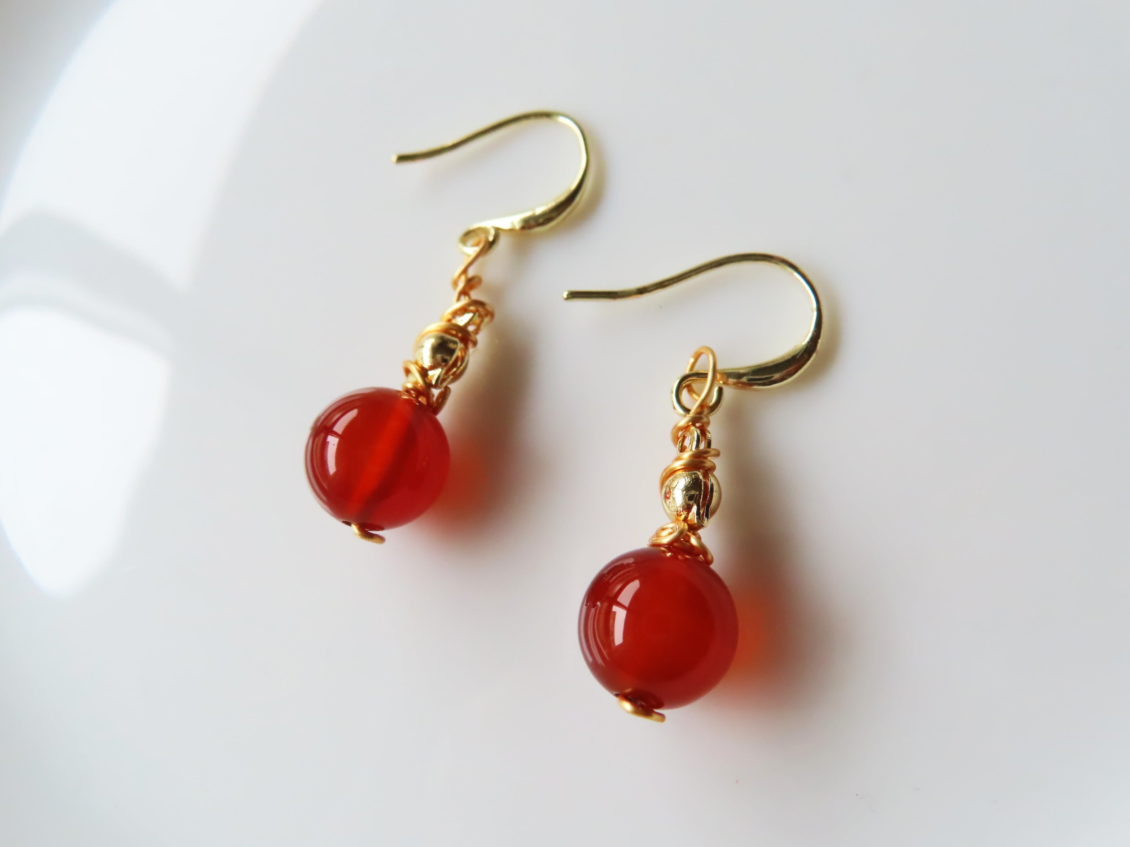 素材:フック、パーツは14kgf(14金ゴールドフィルド)、レッドアゲート10㎜玉