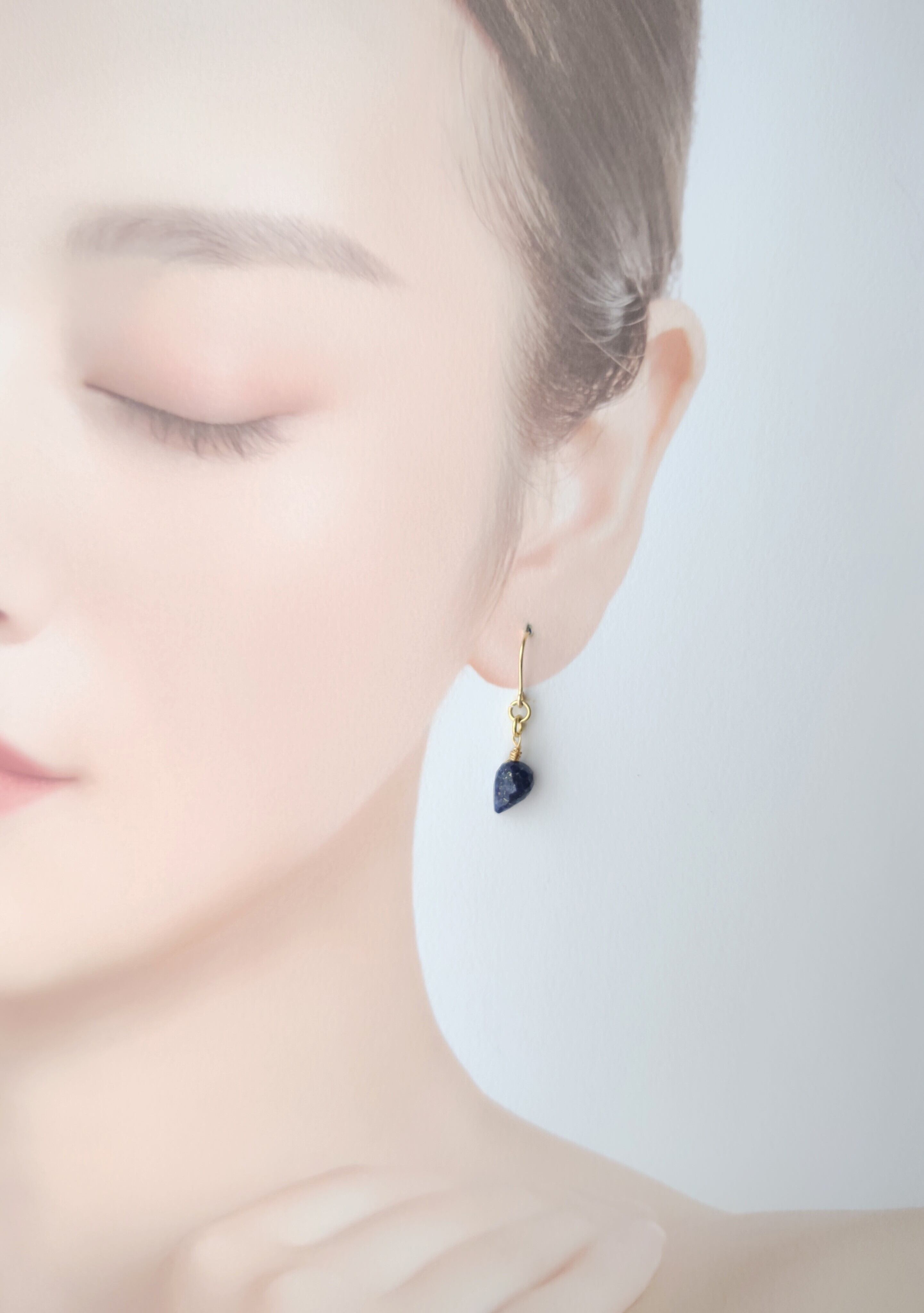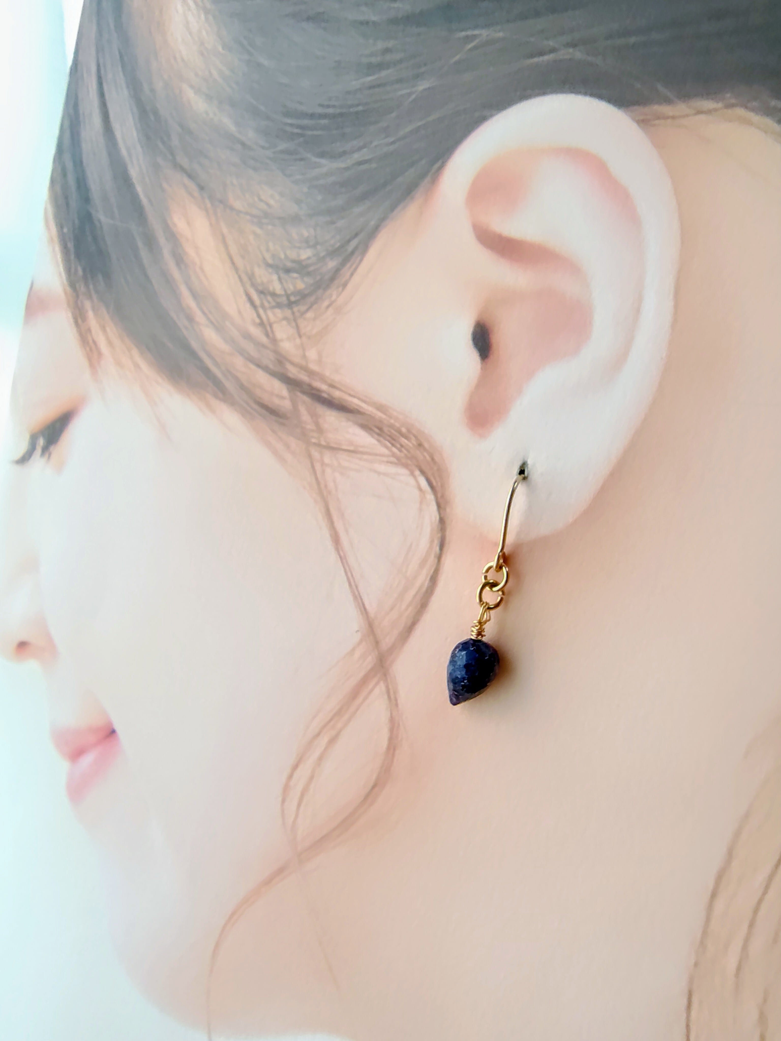 深い青色は、神秘的であり幻想的な魅力を持つ14kgfピアス