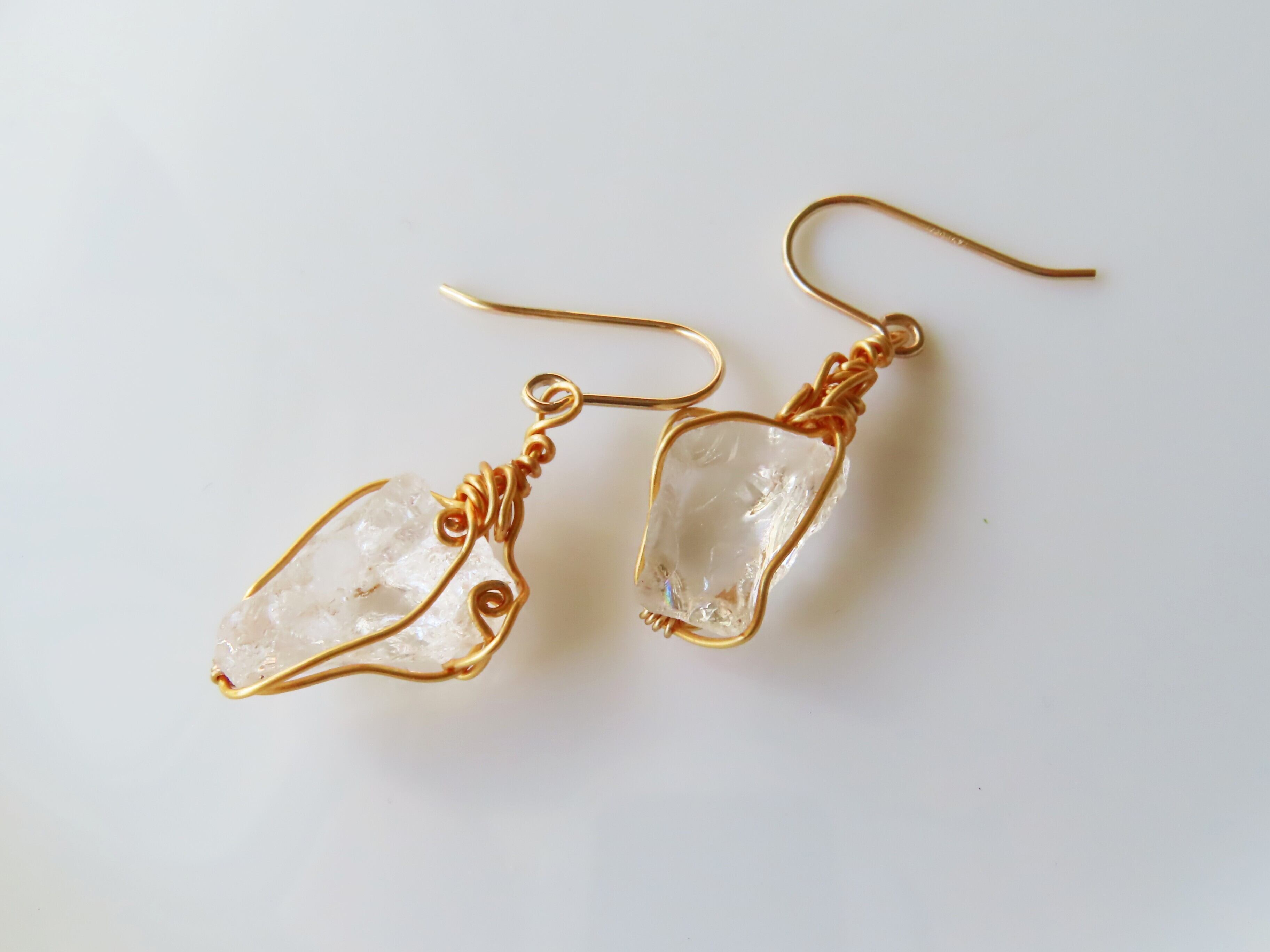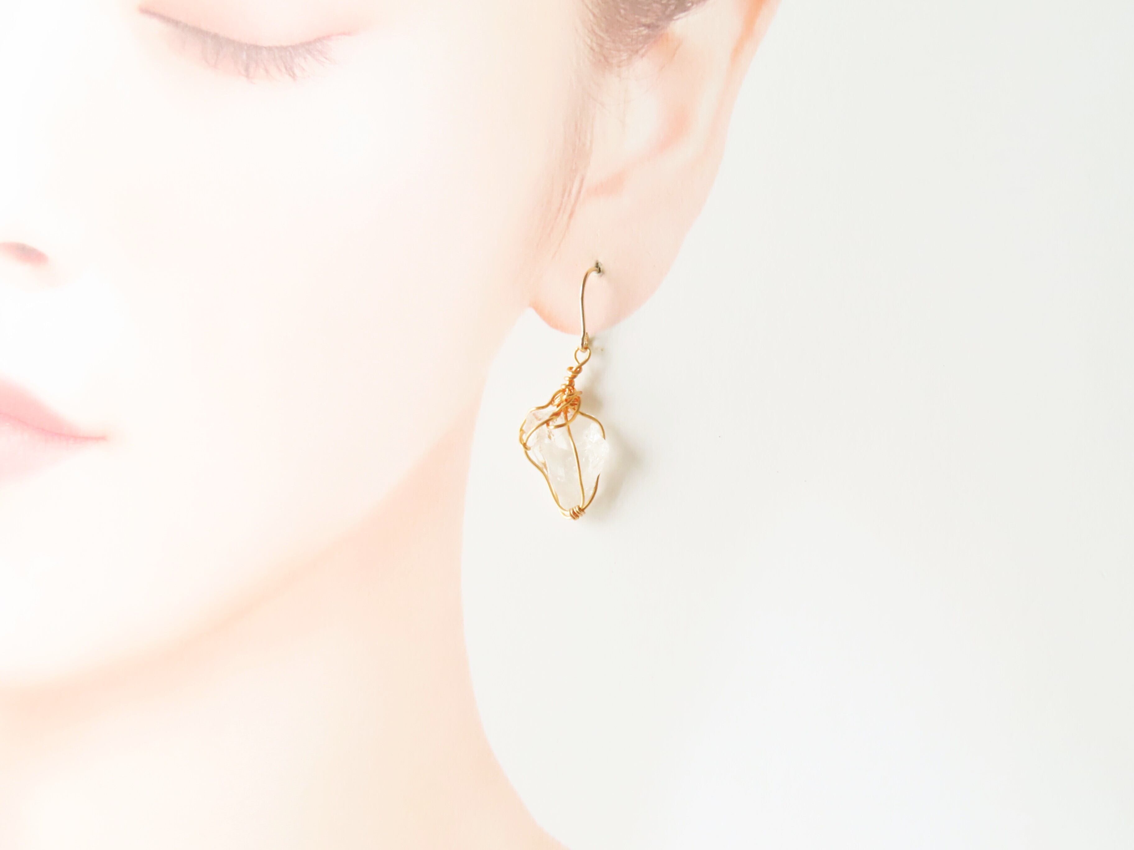 SOLD 山梨県・乙女水晶ピアス&ペンダント 14kgf 「記憶の中で眠っていた光」