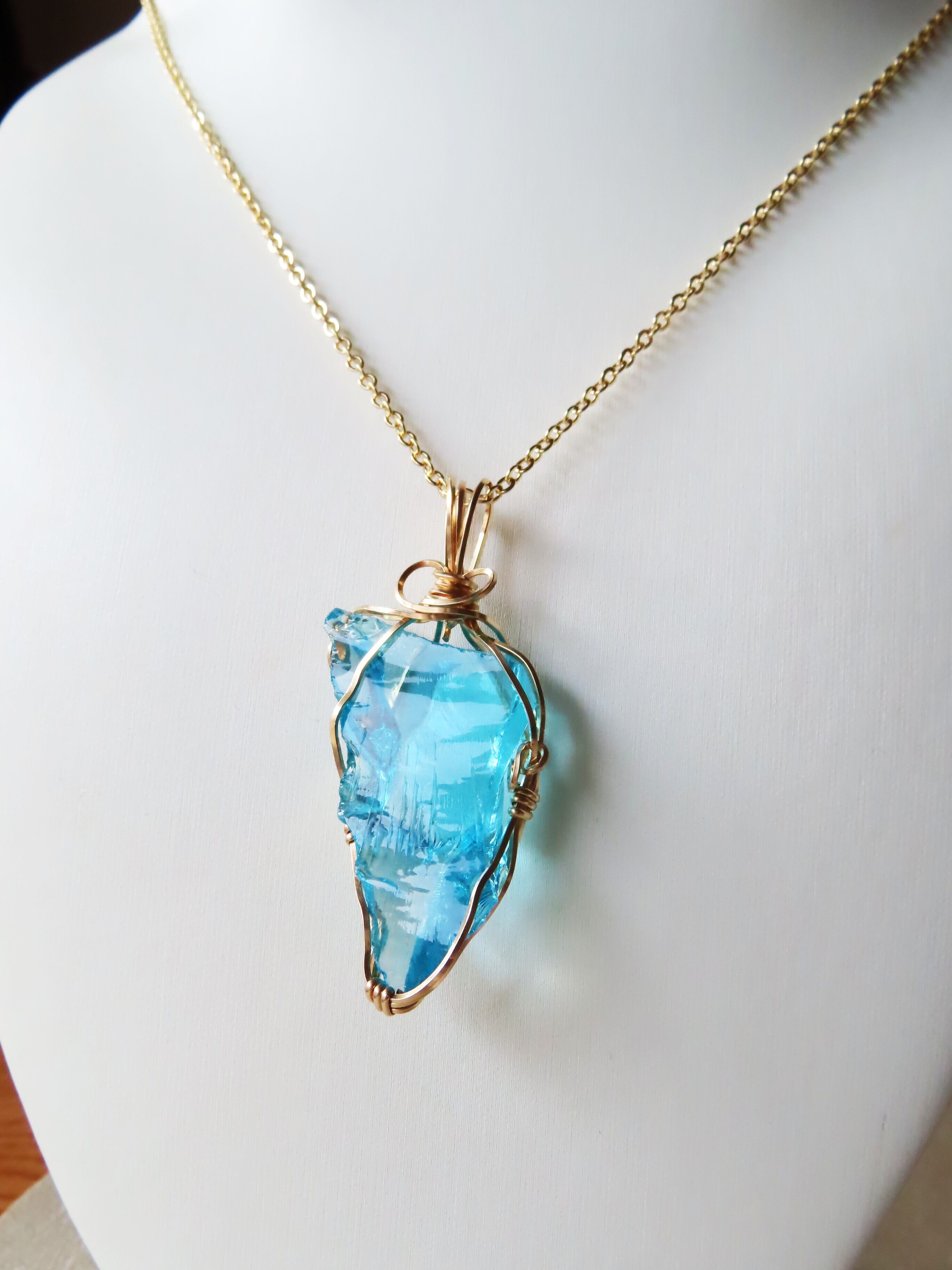 エレクトリックブルー、アンダラクリスタル 大きめ14kgfペンダント 両面使用可