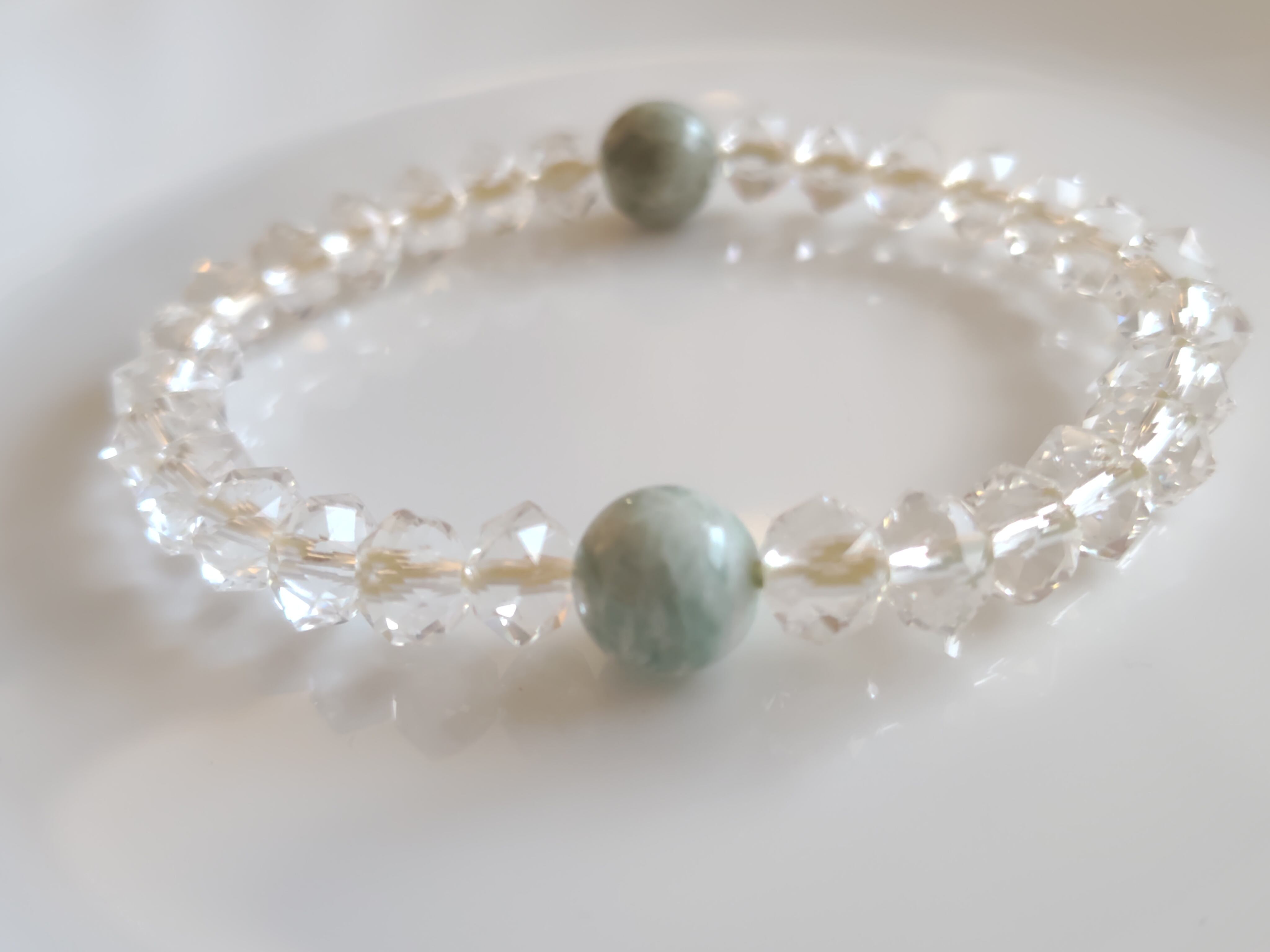 糸魚川産翡翠&カット水晶のブレスレット