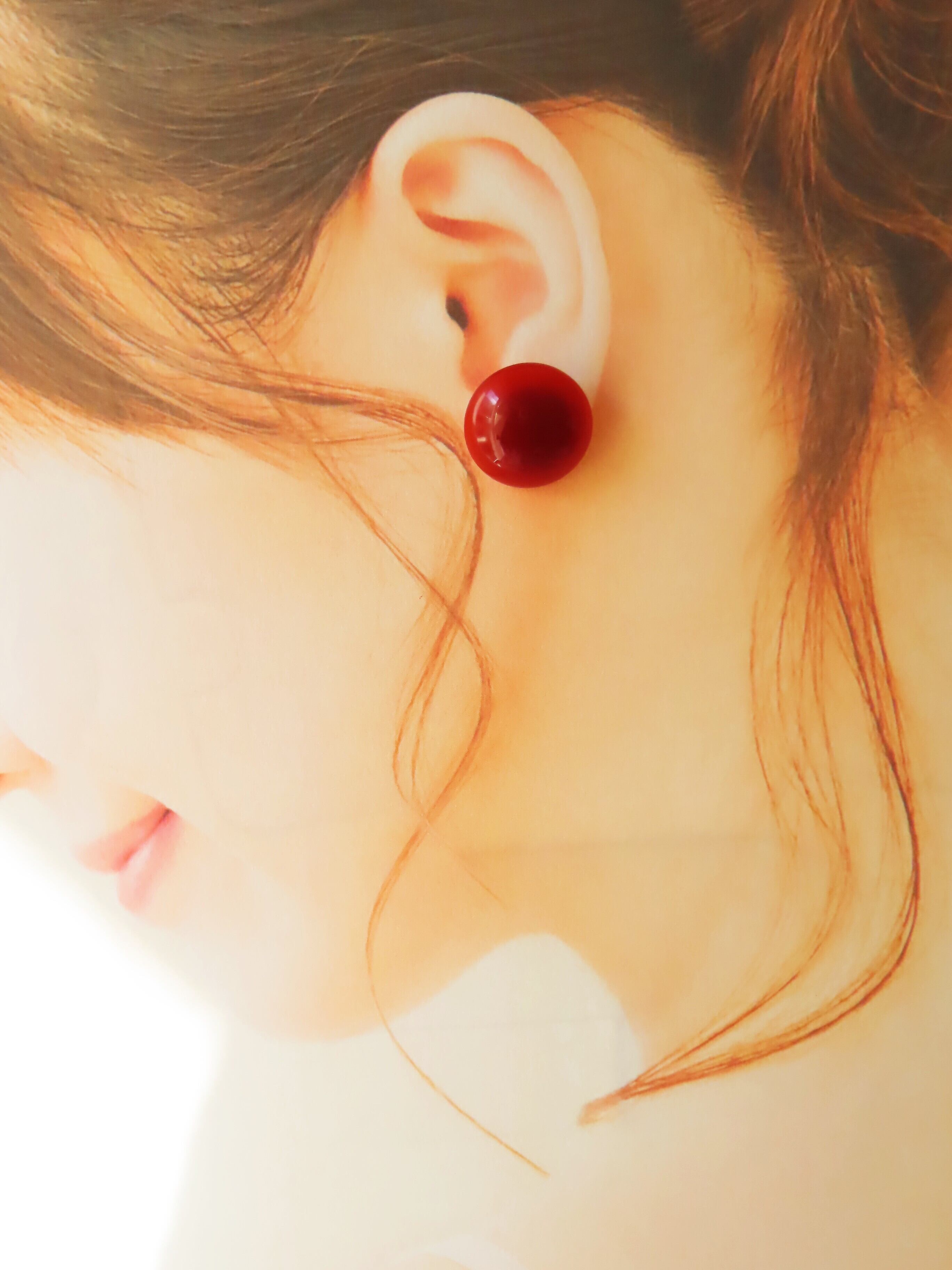 ピアス 3Way ドイツ製カボション チェリーレッド