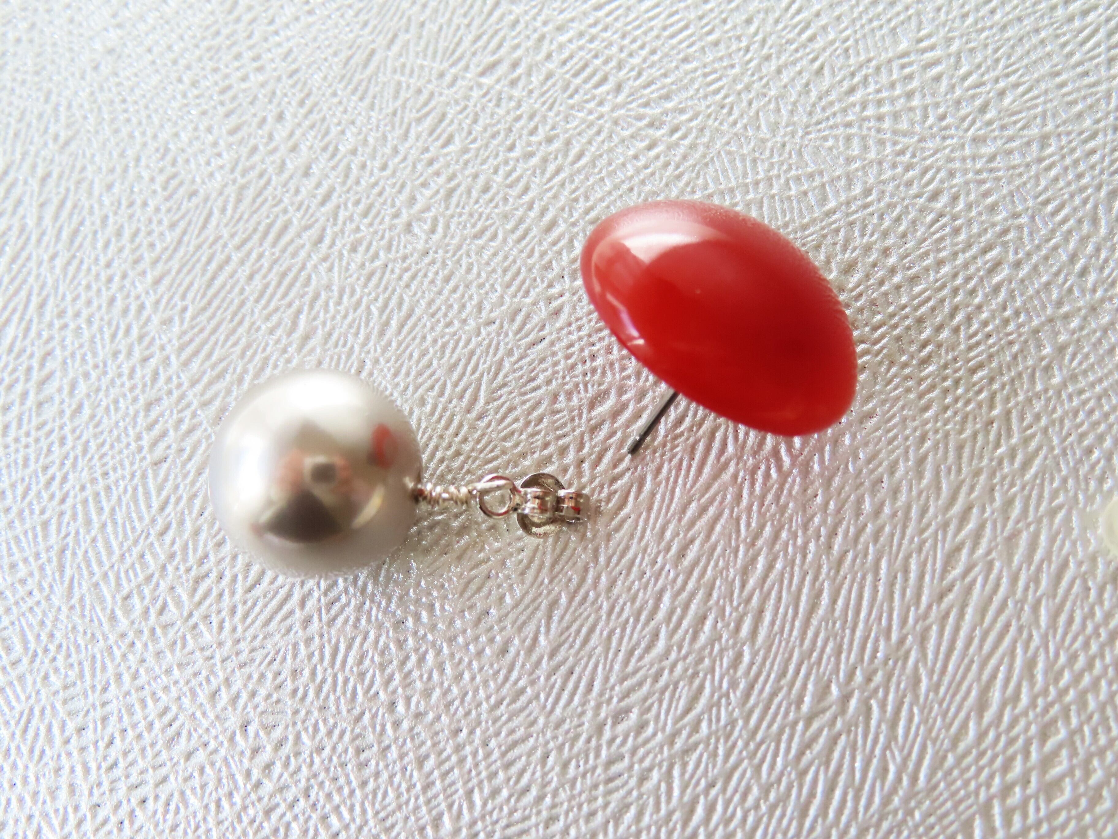 華やかなチェリーレッドのドイツ製カボションを使用した3Wayピアス。