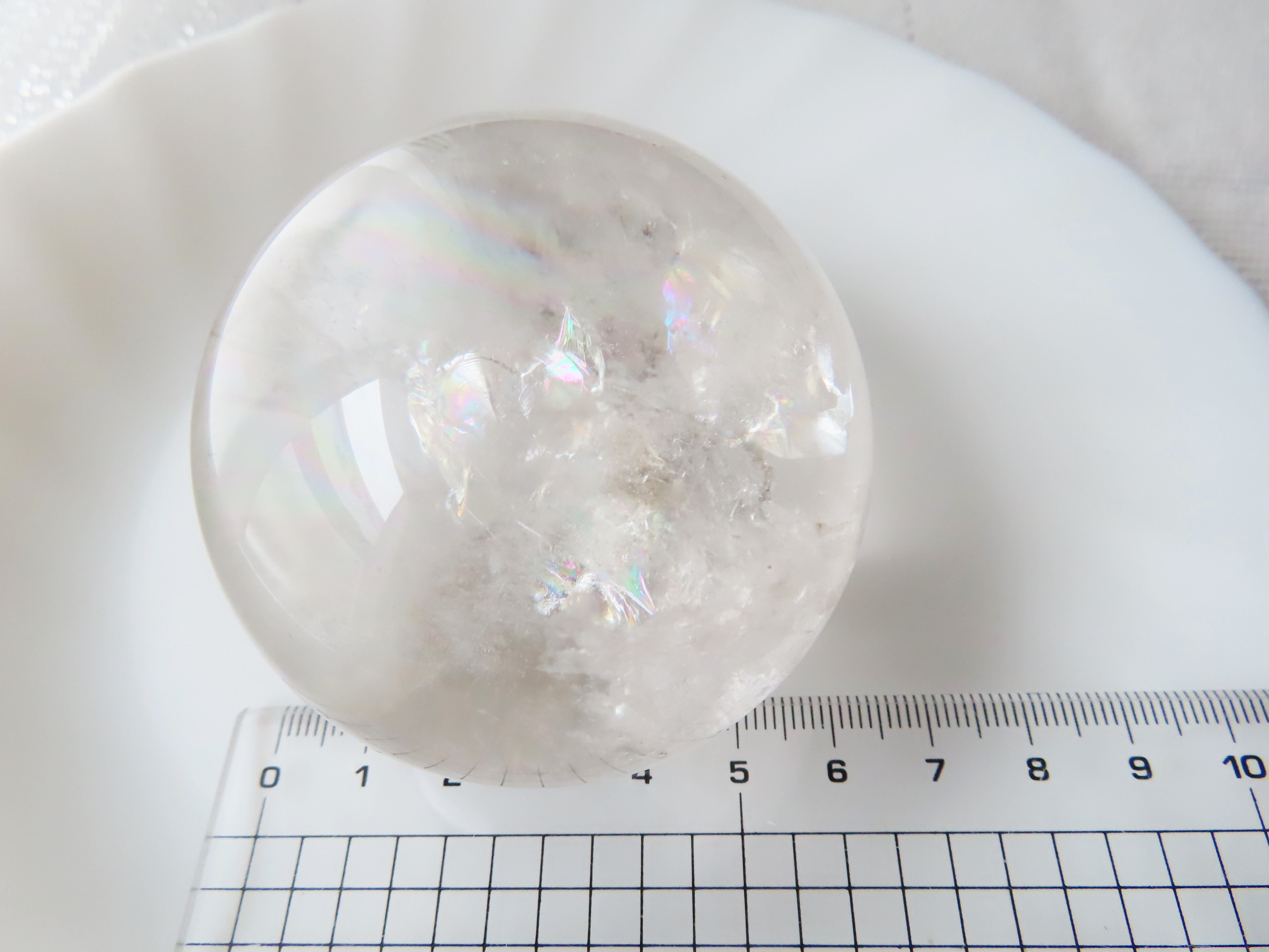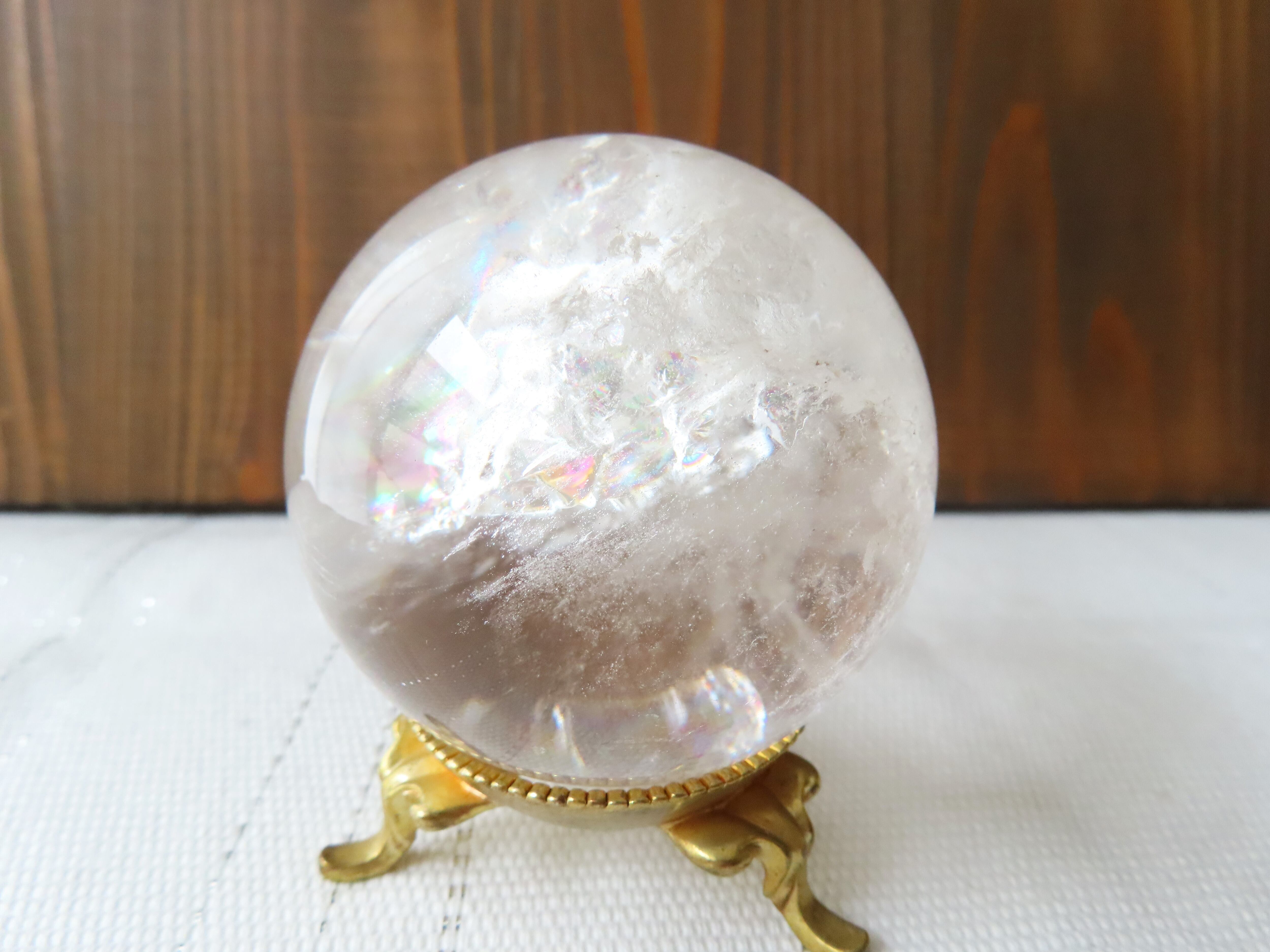 天然水晶 55㎜ 丸玉 虹入り ブラジル産 一点物
