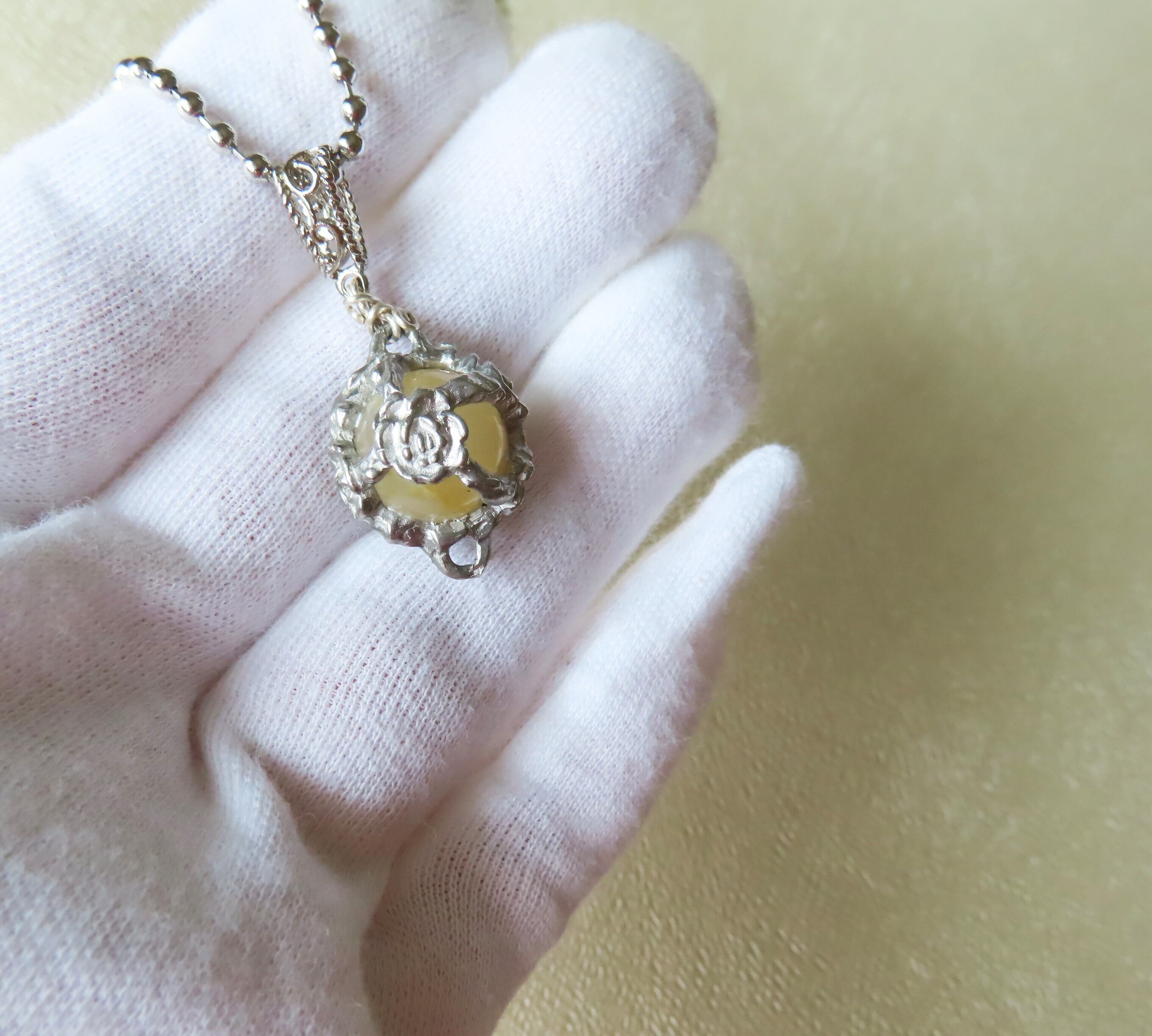 美しく稀少な日本の銘石、静岡水晶を薔薇モチーフで包んだ、